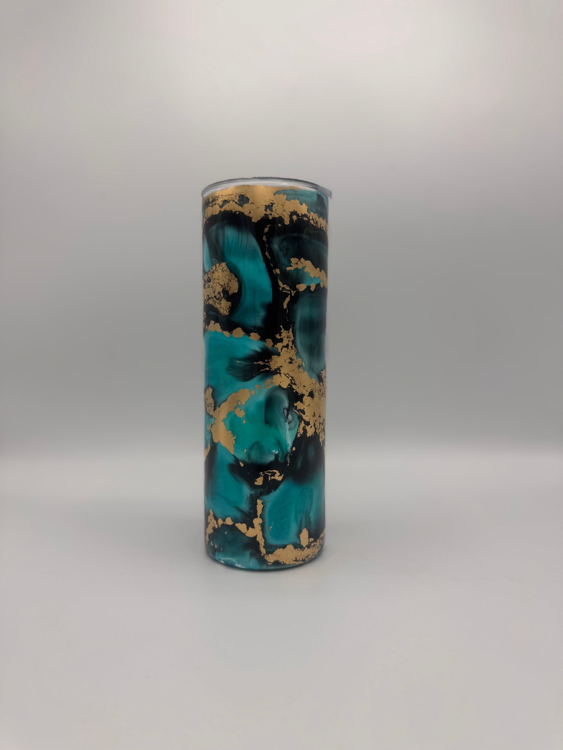 Ein edler 350ml Trinkbecher mit Steckverschluss, veredelt in einem stilvollen Schwarz-Gold-Petrol/Türkis-Design mit goldenem Glitzer. Perfekt für alle, die Luxus und einen Hauch von Meer in ihrem Alltag genießen wollen.